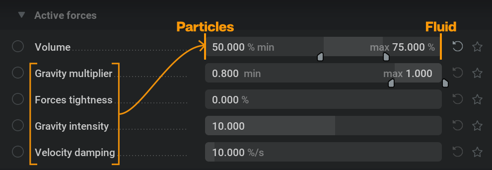 Mode: Select if the collider will affect Volume, Particles, or both. For example, when set to Volume, the Volume will collide but the particles will ignore the collider and go straight through it. Note that the particle motion will still look different compared to turning the collider off, because by default the particles are set to be affected by the simulation in the Active Forces tab.