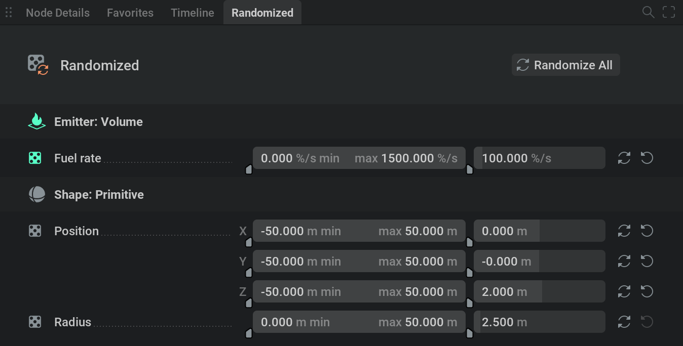 Randomized: This tab contains all the parameters with randomization enabled which can be done by Shift +