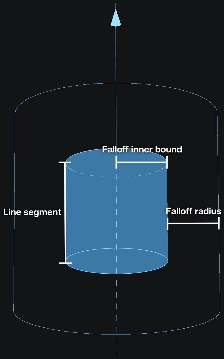 Outside Falloff: Falloff effect based on distance to the surface, 0 mean no falloff (constant force).