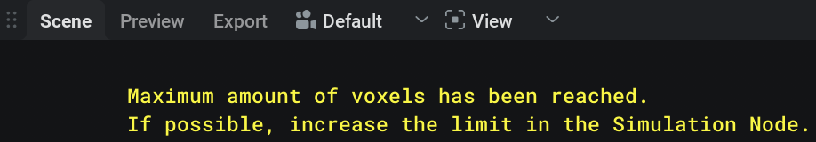 When you hit the limit of these specified resources, the simulation will stop and a message in yellow will be displayed in the viewport. In case of the image on the right, the maximum number of voxels needs to be increased to simulate further.
